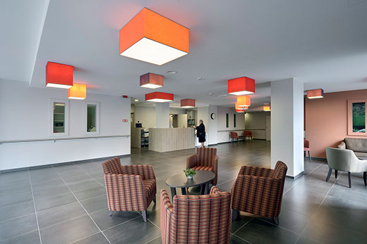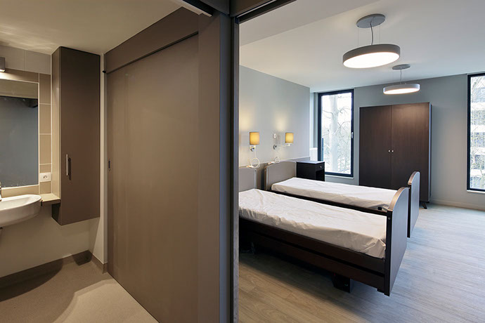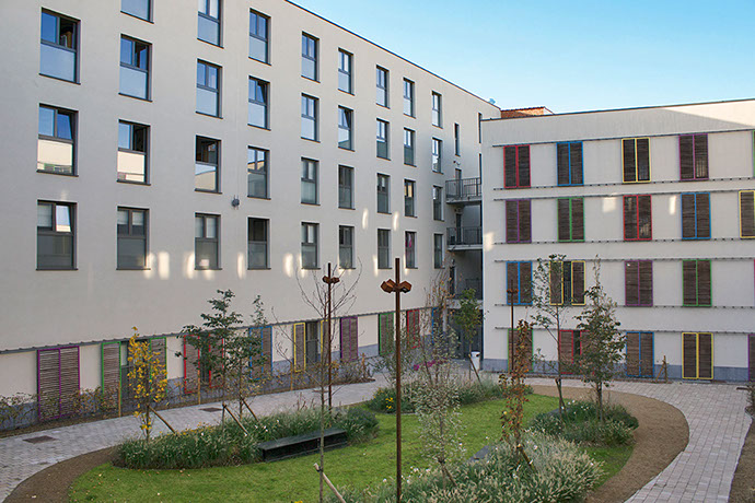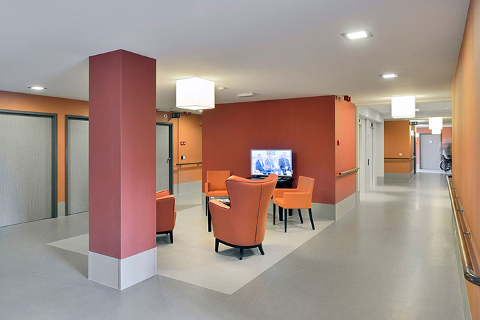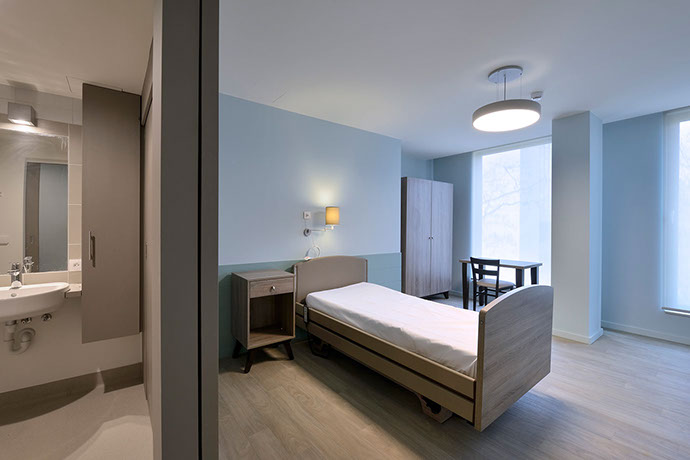 It has become a residential care centre containing 130 rooms that can accommodate up to 143 residents, 34 service flats with 1 or 2 bedrooms and all the service rooms necessary for the comfortable functioning of the nursing home. The project is surrounded by a garden and several terraces (for residents and their visitors).