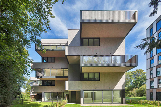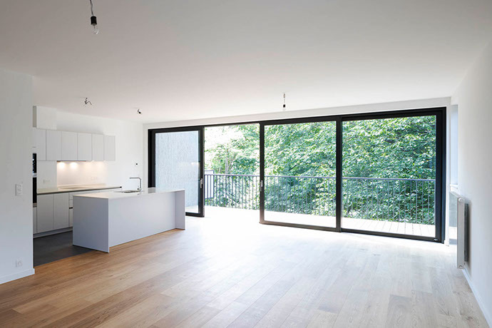 The project includes the establishment of 23 high level apartments (from one to three bedrooms) and the development of the existing underground. The building was designed in respect with the Brussels "Passif 2015" regulations with a focus on sustainability, resulting in, among others, high level of insulation, green roof, triple glazing and solar panels.