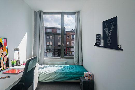 It is 10 minutes walking distance from 2 major university campuses (ULB and VUB) and from the Chirec Hospital complex. 365 is multicultural and is a perfect meeting place. It has been developed jointly with the University of Brussels. Our priority is to offer a high quality of living and ensuring maximum security to our tenants. This site is unique and low energy consuming (solar panels, insulation, green roof, condensing boiler, high performance windows).