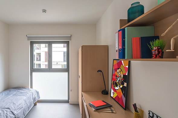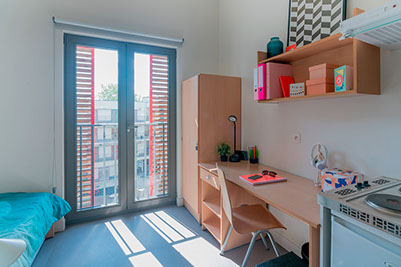 365 is the ideal place for studying. The site includes more than 300 student rooms, a study room of 300 sqm, a laundry, 8 apartments and 5 furnished studios for professors/assistants, a nursery with a capacity for 36 babies/toddlers, an office, bicycle and car parking spaces and a snack food restaurant. The nursery is well separated from the student rooms and causes no noise pollution to the students.