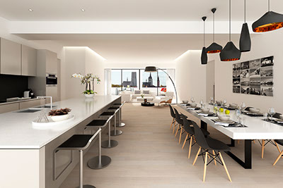The project consisted of converting 3 levels of offices into high level apartments and the refurbishment of the ground floor offices. The existing fitness area remained the same. There are 15 new 1-3 bedroom apartments.